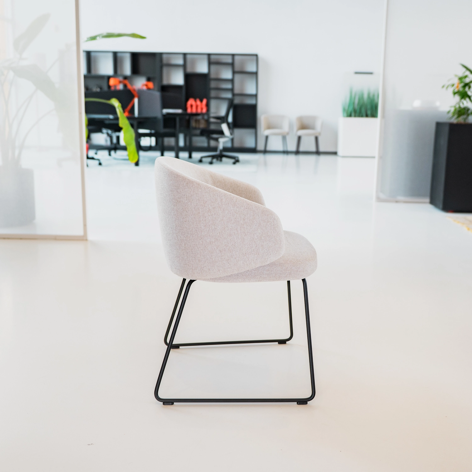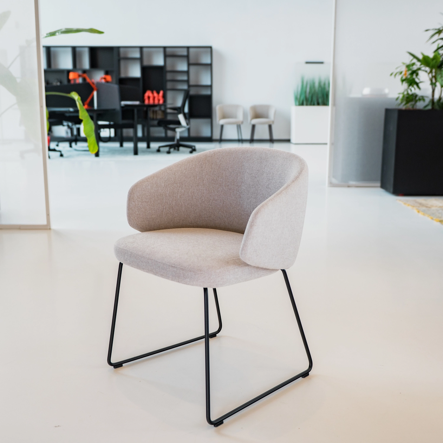 De Inclass Binar 60 biedt ergonomisch comfort met medium/low backrest van stalen frame bekleed met polyurethaanschuim (dichtheid 50 kg/m³) en zachte vezels, volledig gestoffeerd in grijs polyester. Het vierpotige sled frame in basic dark (afmetingen ca. 62 x 55 x 74 cm, zithoogte 47 cm); veelzijdig voor vergaderruimtes, kantoren of lounges.